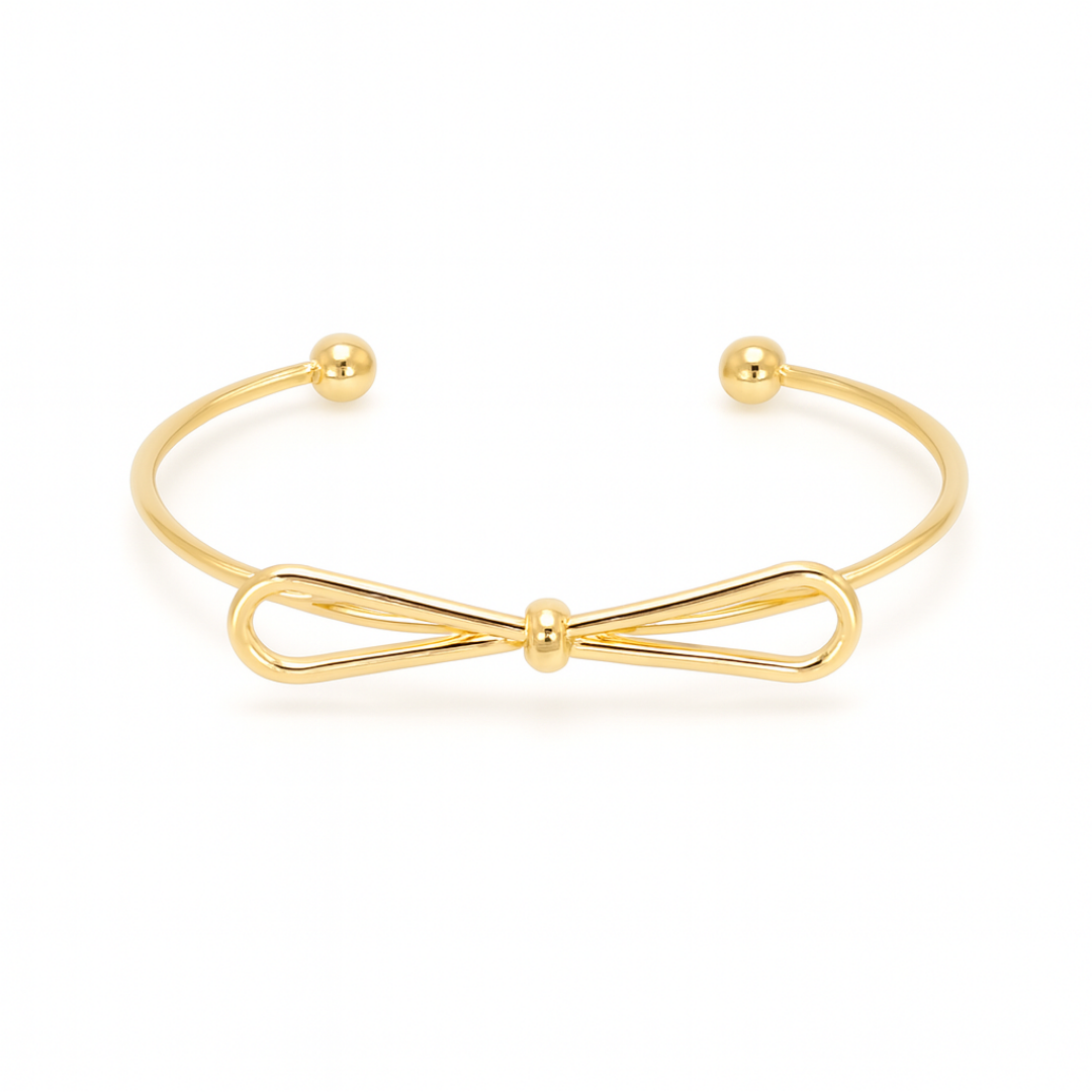 Feminen dokunuş ve zarif detay bir arada! Fiyonk Detaylı Altın Kelepçe Bileklik, sade formunu şık bir fiyonk figürüyle buluşturur. Altın tonunun parlak ışıltısı sayesinde hem günlük hem özel kombinlerde zarif bir tamamlayıcı olur.