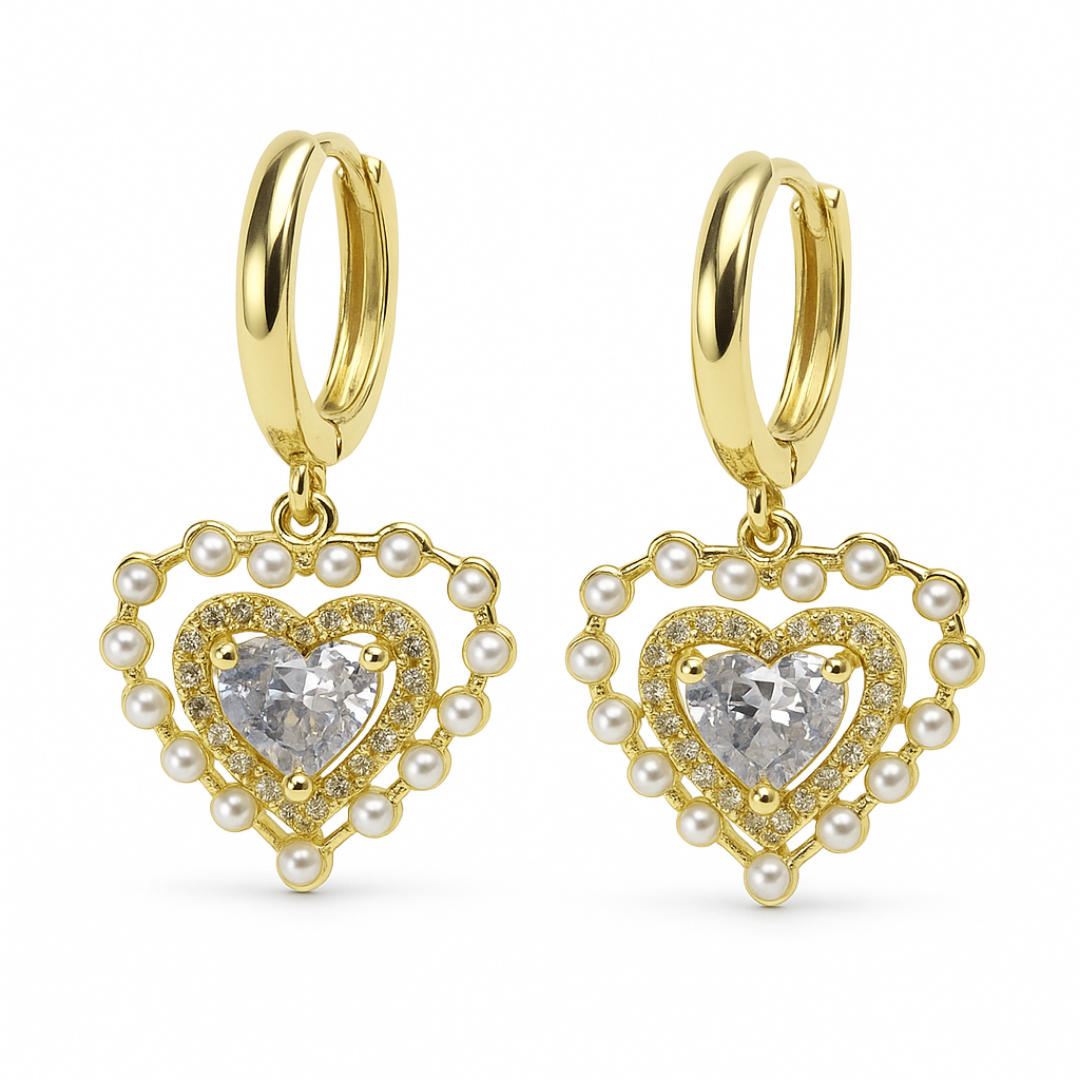 Aşkın en zarif hâli İnci Detaylı Kalp Küpe, altın tonlu halkası, çevresini saran mini inciler ve merkezde parlayan kalp taş tasarımıyla dikkat çeker. Romantik ve şık bir dokunuş arayanlar için özel olarak tasarlandı. Gündüz zarafetini, gece ışıltısını tek bir modelde buluşturur.
