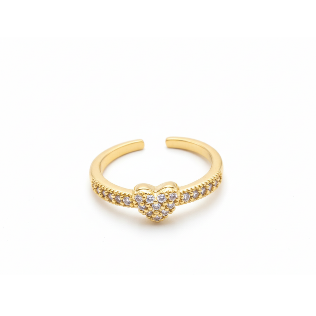 Pirinç Kaplama Kalp Taşlı Yüzük Romantik tasarımıyla ön plana çıkan bu kalp taşlı yüzük, zarif detaylarıyla tarzınıza ışıltı katıyor. Ortasındaki taşlarla süslenmiş kalp motifi sevgi ve zarafeti simgelerken, ayarlanabilir yapısı sayesinde her parmağa kolayca uyum sağlar. Günlük kombinlerden özel davetlere kadar şık bir tamamlayıcıdır.